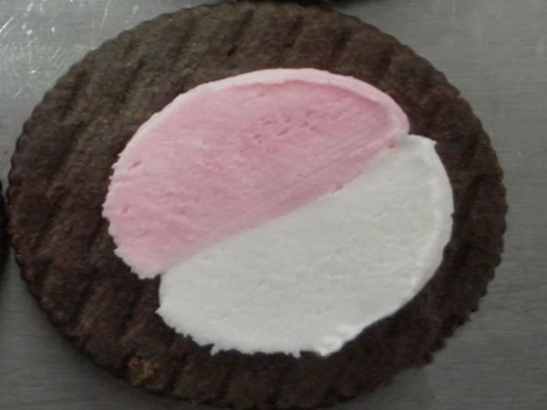Function: to sandwich one layer of double color/flavor cream or jam between two biscuits. Based on different allocation of cream or jam, the sandwiching machine can be designed with single or double stencil heads.